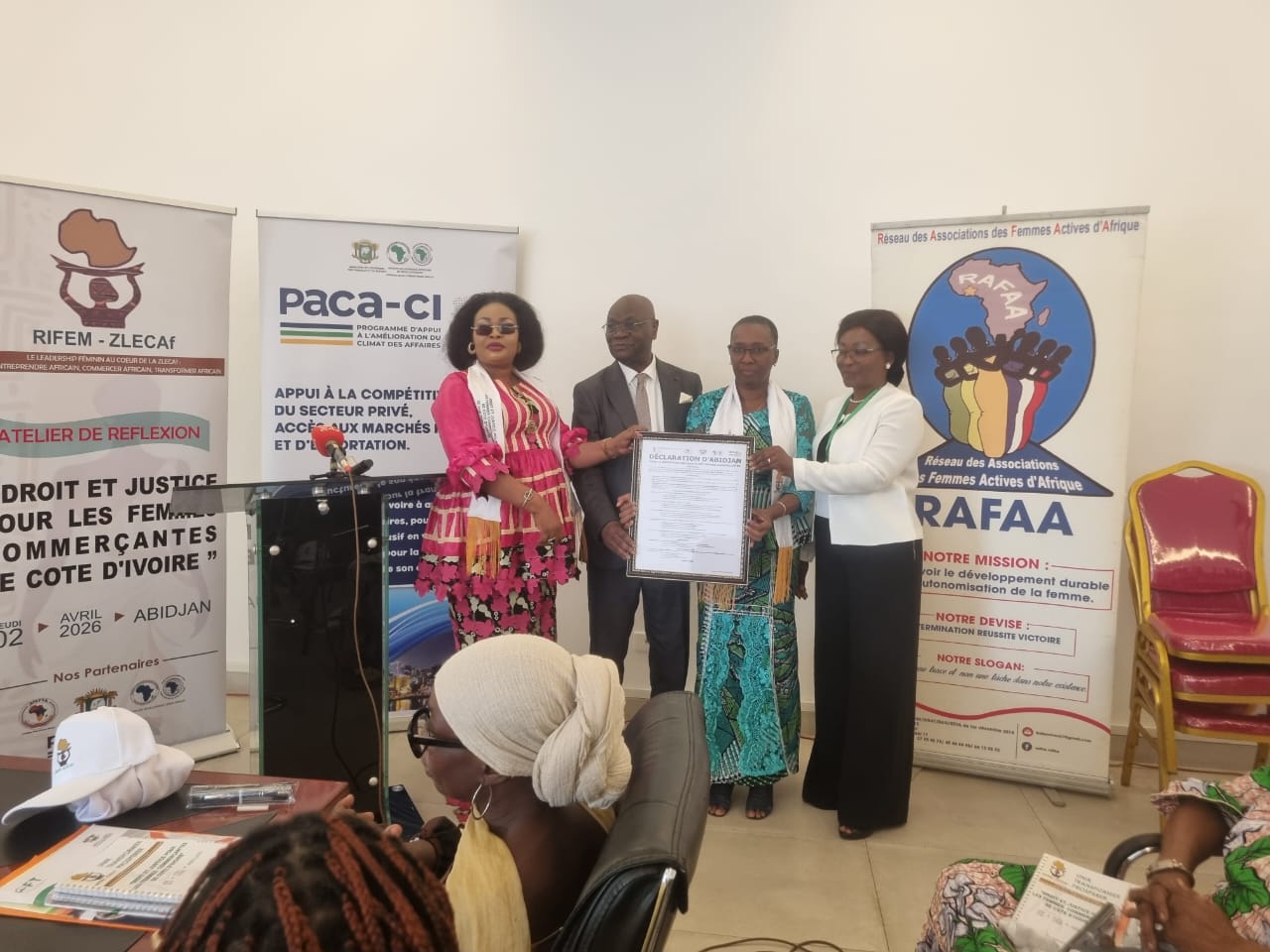 ‎ Abidjan, le 2 avril 2026 – À l’occasion de l’atelier de réflexion sur le thème « Droit et justice pour les femmes commerçantes en Côte d’Ivoire », organisé par le Rifemci Zlecaf en collaboration avec le PACA-CI, Mme Koné Antoinette, présidente nationale du Réseau des Associations de Femmes Actives d’Afrique (RAFAA), a livré un message fort en faveur de l’union et de la solidarité entre les femmes entrepreneures du continent.‎‎Prenant la parole devant un parterre d’acteurs institutionnels, d’experts et de femmes commerçantes, elle a insisté sur la nécessité pour les organisations féminines de dépasser les logiques individuelles pour adopter une dynamique collective .‎‎« Dans un environnement économique de plus en plus exigeant, nos associations mènent des actions remarquables. Mais évoluer de manière dispersée limite notre capacité d’impact », a-t-elle souligné.‎‎Pour la présidente du RAFAA, l’enjeu n’est pas de perdre son identité en s’unissant, mais plutôt de renforcer son efficacité et son influence . Elle voit dans la mutualisation des efforts une opportunité stratégique pour accéder à davantage de ressources, peser dans les prises de décisions et tirer pleinement profit des opportunités offertes par la Zone de libre-échange continentale africaine (ZLECAF) .‎‎« Le véritable pouvoir aujourd’hui, ce n’est pas d’être seule et forte, mais d’être collectivement puissante », a-t-elle affirmé avec conviction.‎‎S’appuyant sur une citation du philosophe Sénèque, Mme Koné Antoinette a exhorté les femmes à oser franchir le cap de l’organisation et de la coopération :‎‎« Ce n’est pas parce que les choses sont difficiles que nous n’osons pas, mais parce que nous n’osons pas qu’elles sont difficiles. »‎‎Dans son intervention, elle a ainsi lancé un appel à l’action, invitant les femmes entrepreneures africaines à se structurer davantage, à renforcer leurs connexions et à bâtir ensemble un écosystème économique plus solide et inclusif .‎‎« Le temps est venu de nous organiser, de nous connecter et de construire ensemble. Pour une Afrique nouvelle, femmes actives, agissons maintenant », a-t-elle conclu.‎‎À travers cette prise de parole, la présidente du RAFAA a rappelé que l’intégration économique africaine ne saurait être pleinement réussie sans une participation active, structurée et influente des femmes .‎